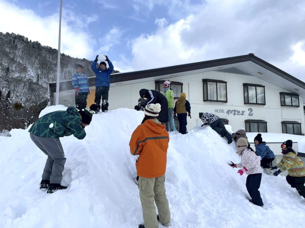 最初はスキー板を履くのもやっとでたくさん転んでいた子達も、2日目には慣れて滑れるようになりました。西宮25団のスカウト達ともすぐに仲良くなり、スキー以外の時間も楽しく過ごすことができました。